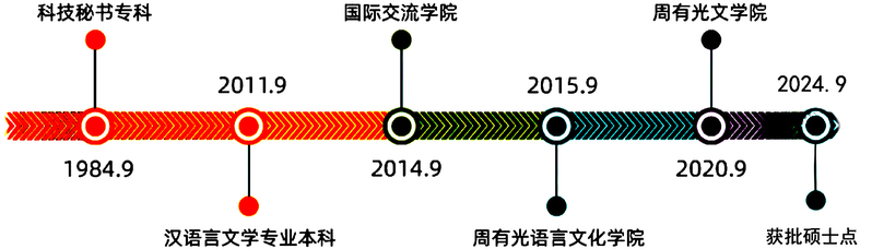 成人直播 地处古江南腹地、“诗国”常州,具有深厚的历史文化底蕴和丰富的办学资源。学院中文专业教育源于1984年面向石化企业开办的科技秘书专业(专科),办学伊始即有“产教融合”特性。2011年设立汉语言文学本科专业,开启本科中文教育新纪元。2014年划归国际学院,师资国际化水平逐步提升。2015年与外国语学院合并组建周有光语言文化学院,以常州籍著名语言学家周有光先生名字命名,并由其担任终身名誉院长,设周有光基金助力专业发展。2020年,中文专业分设为成人直播 ,继续以周有光先生名字命名,在校师生总数增至600多人,驶入独立发展快车道。2024年获批硕士点。
